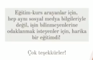 — Eğitimde sosyal medyada pazarlama ve satış yapabilmek için ihtiyacınız olan bilgilere ve pazarlamanın bilinmeyenlerine ulaşacaksınız.